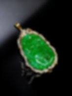 Estate 18K Yellow Gold Carved Green Jade Baguette Round Diamond Large Pendant