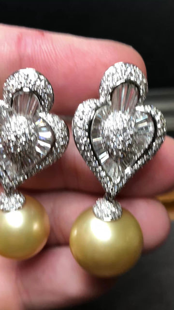 Platinum Diamond South Sea Golden Pearl Day Night Earrings