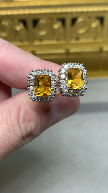 Estate 18K White Gold Diamond Citrine Omega Back Huggie Earrings 3.96ctw