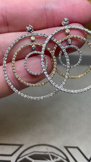Contemporary 14K White Yellow Gold Double Circle Diamond Drop Earrings 2.70ctw
