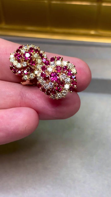 Vintage 14K Vivid Ruby Diamond Swirl Omega Back Huggie Earrings 4.20ctw