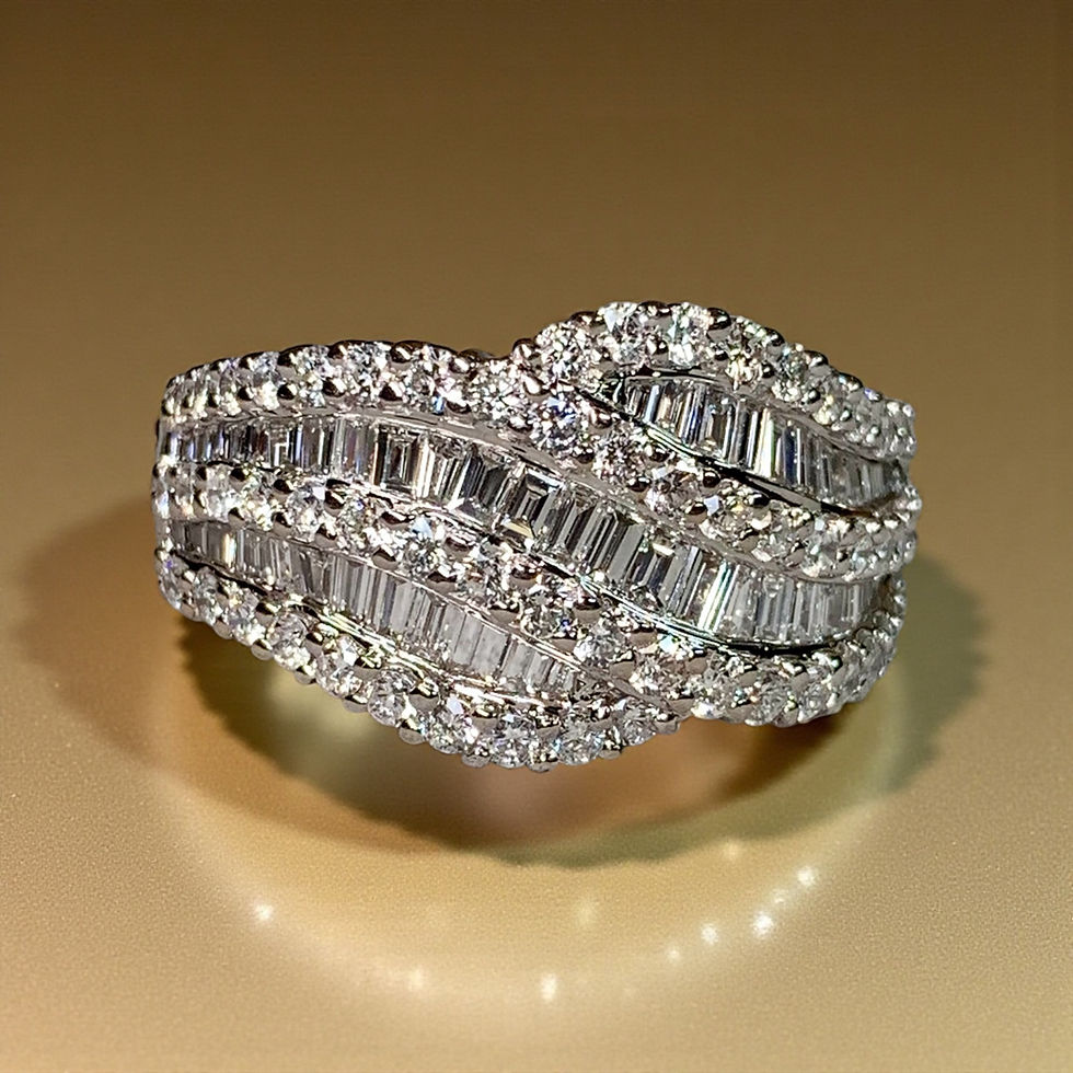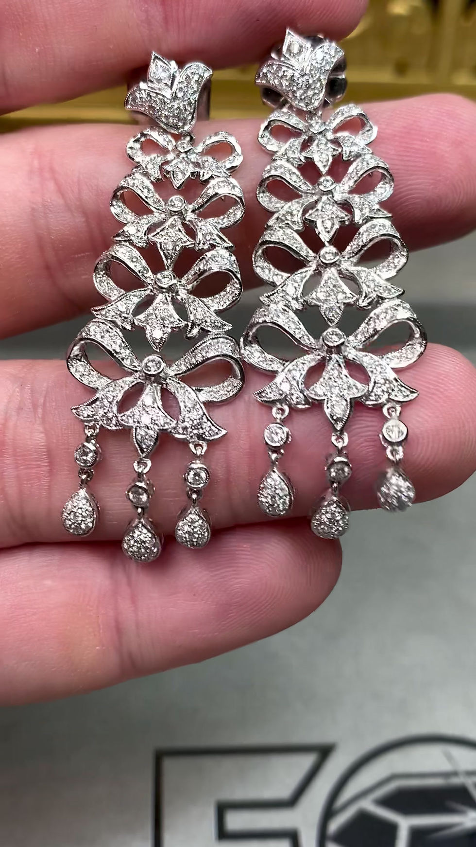 Estate 18K White Gold Pavé Diamond Triple Oval Contemporary Drop Necklace 4.35ct